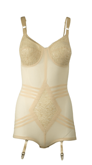 This extra firm contour body shaper features our exclusive contour bands, lined lace cups and flat sewn seems. It is made of firm control Shapette® Power Net fabric made of 77% nylon, 23% Invista® Lycra® to stretch 2 ways.