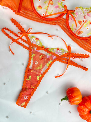 Embrace the essence of summer with the **Sunny Meadow Floral Lace Lingerie Set with Wide Straps**. This delightful set features a vibrant orange hue adorned with charming floral patterns, perfectly capturing the spirit of a sunny day in the countryside. The wide straps provide both comfort and support, making it ideal for all-day wear, while the delicate lace accents add a touch of femininity and romance. Whether you're enjoying a relaxing day at home or dressing up for a special occasion, this lingerie set will have you feeling fresh, confident, and effortlessly beautiful. Indulge in the playful elegance of this enchanting ensemble!