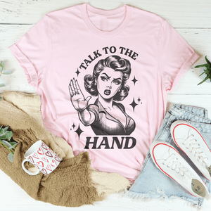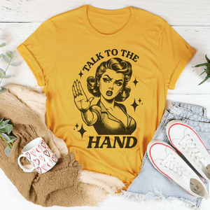 Add a playful touch to your wardrobe with our "Talk To The Hand" t-shirt. Perfect for those who love to keep it bold and witty, this tee is ideal for casual outings, relaxed weekends, or making a fun statement. It’s your go-to for effortlessly expressing your sassy side.