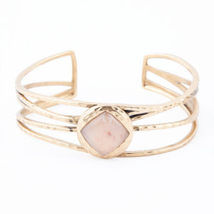 Terra Peach Moonstone and Golden Cuff Bracelet