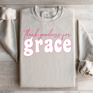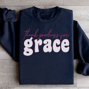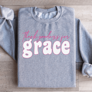 The "Thank Goodness for Grace" statement is displayed in a subtle yet elegant design, making this sweatshirt a tasteful expression of your faith and thankfulness. It's not just a piece of clothing; it's a gentle proclamation of your appreciation for life's grace. Wear it and carry a message of hope and gratitude with you.