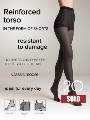Transparent elastic SOLO tights are practical, durable, and resistant to damage. SOLO provides lightness and comfort throughout the day. A classic model. Ideal tights for everyday wear and special occasions.