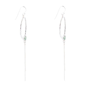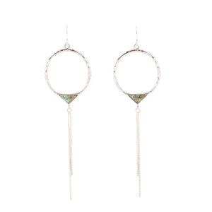 Our Chain Fringe Front Hoop earrings will complete your look with handmade glamour. A genuine turquoise set in hammered a sterling silver hoop, with a delicate chain fringe - these earrings have been lovingly crafted and finished by hand, giving a unique, boho chic style. Own something special and feel the unmistakable elegance of these 4" earrings.