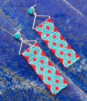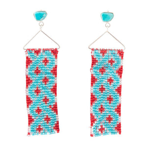 Delight in the intricate beauty of these Woven Seed Bead Earrings crafted with genuine turquoise and sterling silver. Hand beaded in Mexico with Miyuki beads, these earrings hang 3.25" from a sterling silver ear post and each earring weighs 4.1 grams including a butterfly earring back. Make a unique statement with these stunning earrings! 💠💎