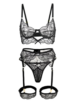 Ultra-Thin Sheer Black Embroidery Lingerie Set