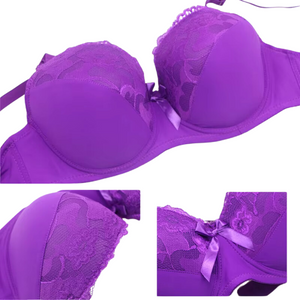 The Valentino Everyday Push-Up Bra combines elegance and everyday comfort with a touch of sensual charm. Designed to enhance your natural shape, this bra features a flattering three-quarters (3/4) cup that offers subtle lift and support for a beautifully contoured silhouette. The delicate lace design, complemented by a charming bow ribbon, adds a feminine and luxurious touch, while adjustable straps and a secure back closure ensure a perfect fit for all-day wear. Whether you're dressing for a special occasion or seeking confidence in your daily routine, the Valentina Push-Up Bra is your go-to essential for style and comfort.