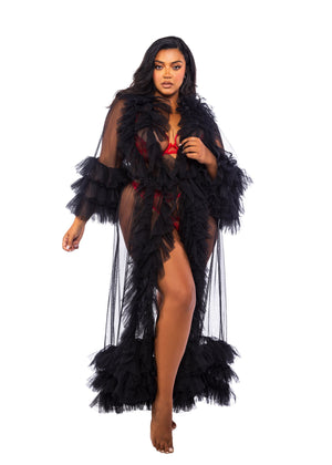 Floor Length Robe, Ruffled Opening and Sleeves
