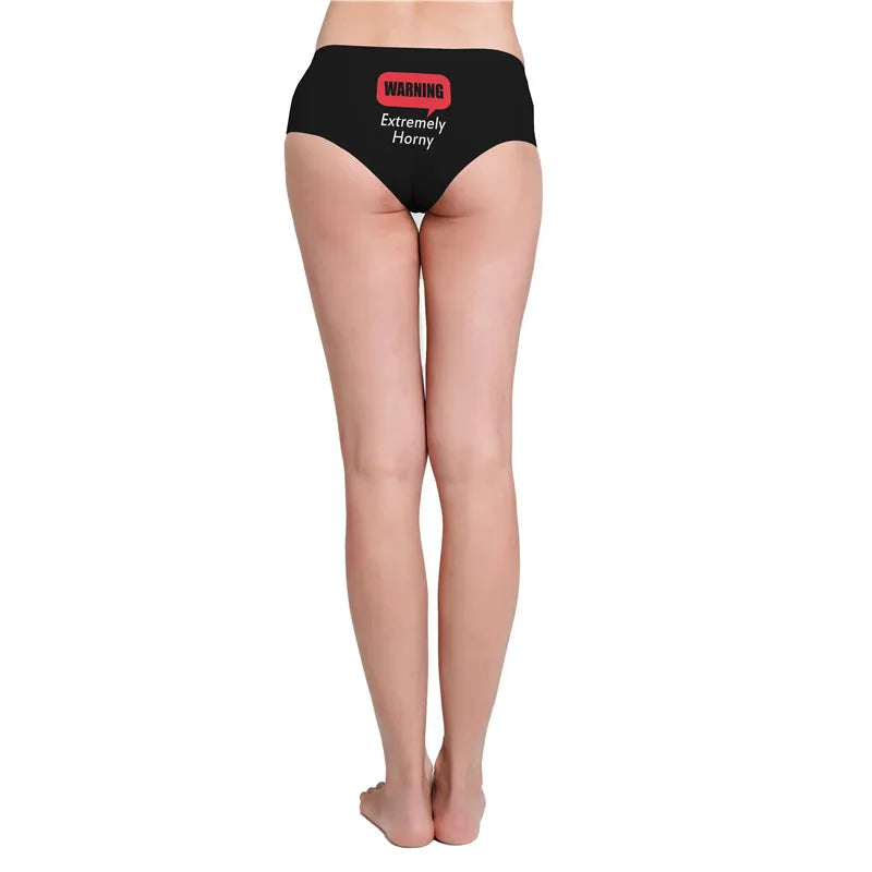 - Eye-Catching 3D Print: A playful Warning Extremely Horny Panty design that demands attention.