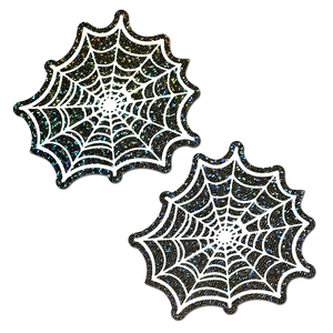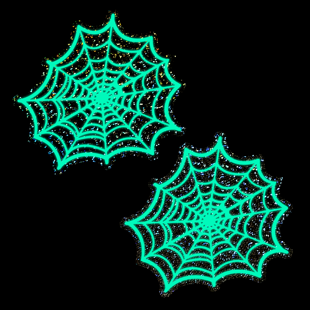 Web: Glitter Black Glow in the Dark Spooky Spider Web Nipple Covers by Pastease
