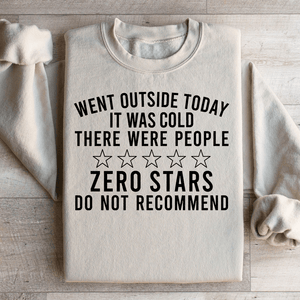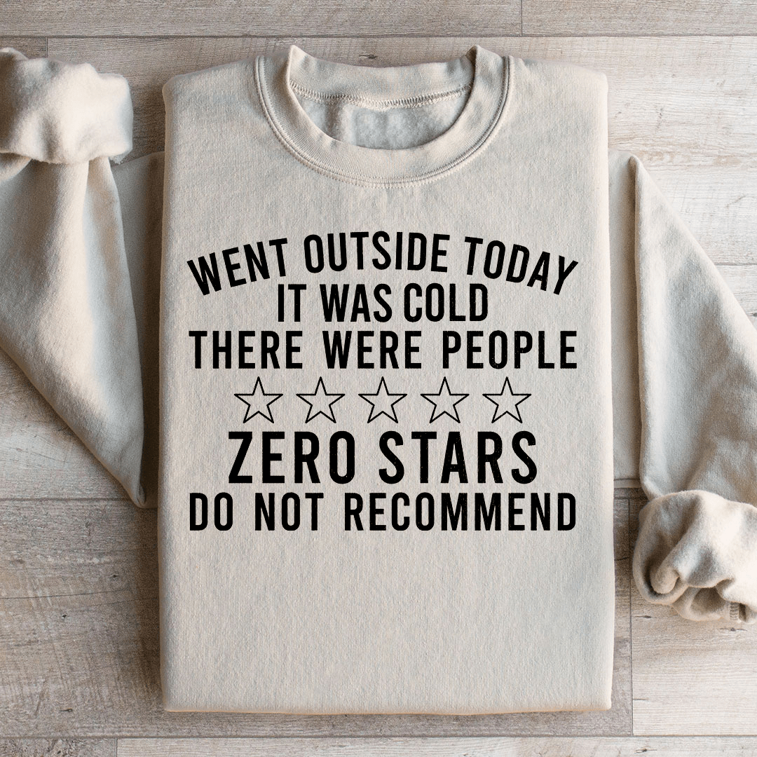 Available in a range of sizes, our "Zero Stars, Do Not Recommend" sweatshirt ensures a perfect fit for everyone. So, if you're ready to rate your outdoor experience with a witty twist, don't wait – grab yours today and let your fashion do the talking!.