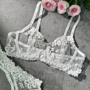 White Cherry Blossoms Sheer Lace Lingerie Set