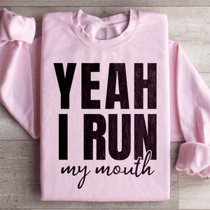 Whether you're known for your witty banter, appreciate a good chat, or simply enjoy the lighthearted side of communication, our "Yeah I Run My Mouth" sweatshirt lets you wear your conversational prowess and authenticity with style. Grab yours today and show the world that you're not afraid to speak your mind – because sometimes, words are the best accessory!.