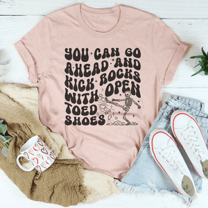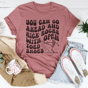 The "You Can Go Ahead And Kick Rocks With Open Toed Shoes" T-shirt is a must-have for anyone with a sharp wit and a bold attitude. This playful tee takes a classic saying and spins it with a touch of humor, perfect for those days when you're feeling a little feisty.